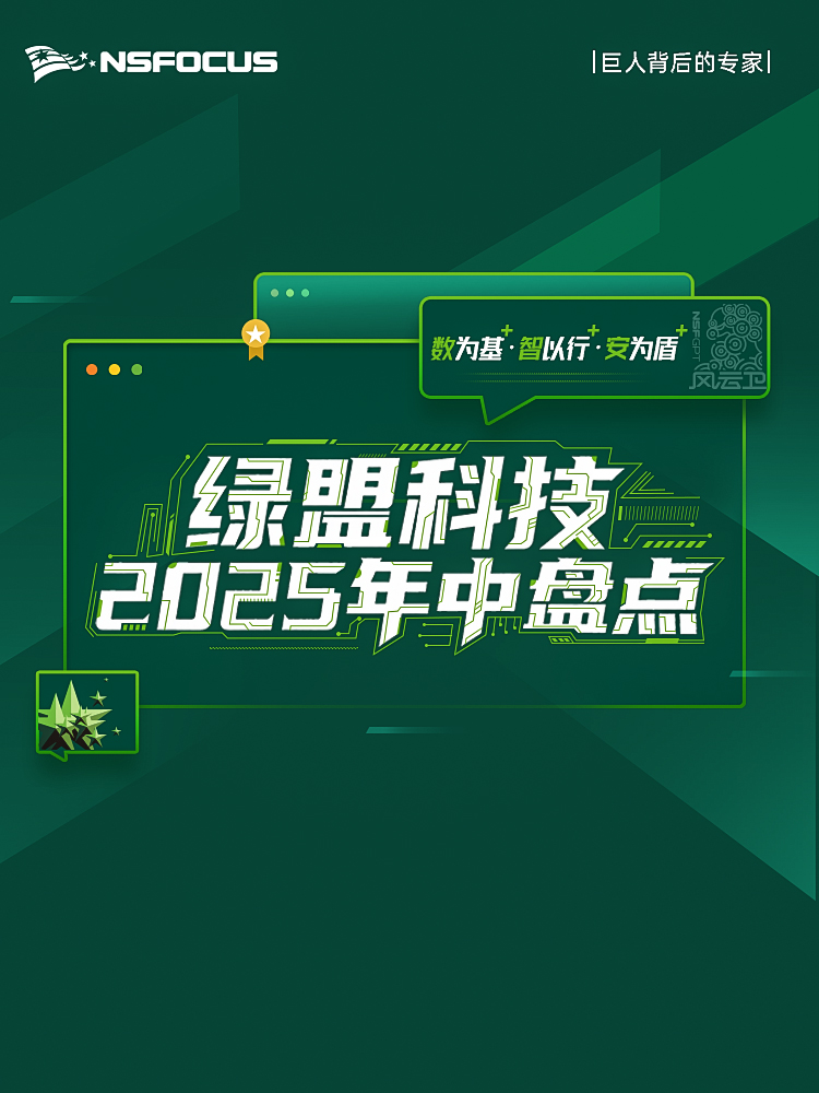 更多>? 2025 NSFOCUS 綠盟科技 www.nsfocus.com All Rights Reserved . 京公網(wǎng)安備 11010802021605號(hào) 京ICP備14004349號(hào) 京ICP證110355號(hào)